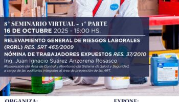 Se informa que el VIII Seminario Virtual se desarrollará en dos partes, en el mes de noviembre 2025 se dictará el Seminario “Sistema de Vigilancia y Control de Sustancias y Agentes Cancerígenos, Resolución 81/2019” Se recuerda que, los expositores a cargo de los seminarios forman parte del equipo técnico de la SRT, y esta vez […]