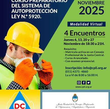 DESTINADO: a profesionales que aspiren a incorporarse al Registro de Profesionales para la elaboración y puesta a prueba de los Sistemas de Autoprotección establecida por la Ley 5920. Para aprobar el curso y acceder al Registro, es requisito rendir y aprobar el examen presencial que corresponda a cada edición. FECHA: 6, 13, 20 y 27 […]